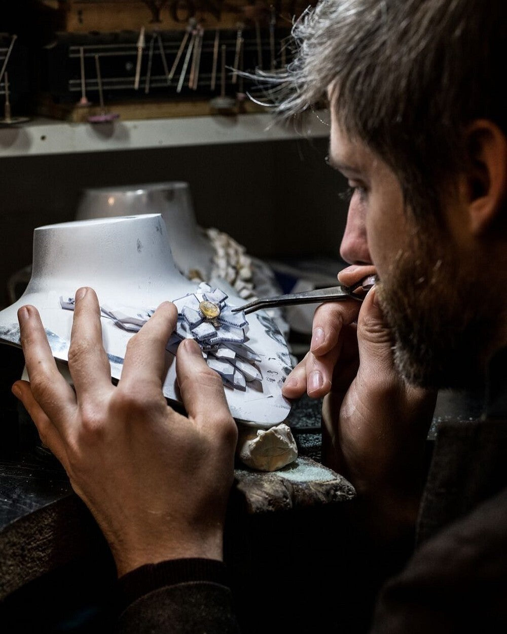 Polishing craftsmanship: Polishing the upper section of thejewelry