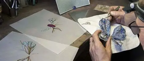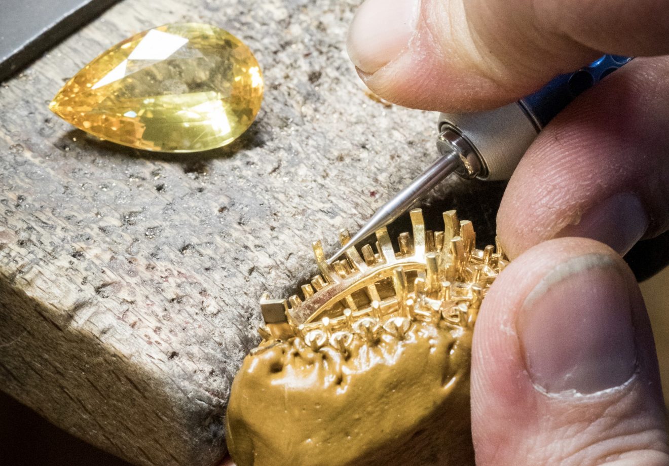 Carve flower-shaped gold mounts, reserve spaces for opal setting.
