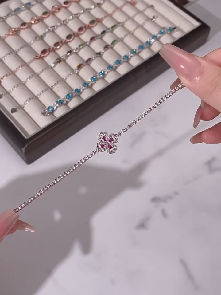 Crafted with rubies (main stone) and S925 silver, the lucky clover shape carries auspicious meanings, letting beauty linger around the wrist; the rubies have rich color and shine brightly, paired with full-diamond (cubic zirconia) inlays for extra light luxury sophistication; the multi-layer electroplating process enhances the silver luster and durability, with delicate and high-end texture.